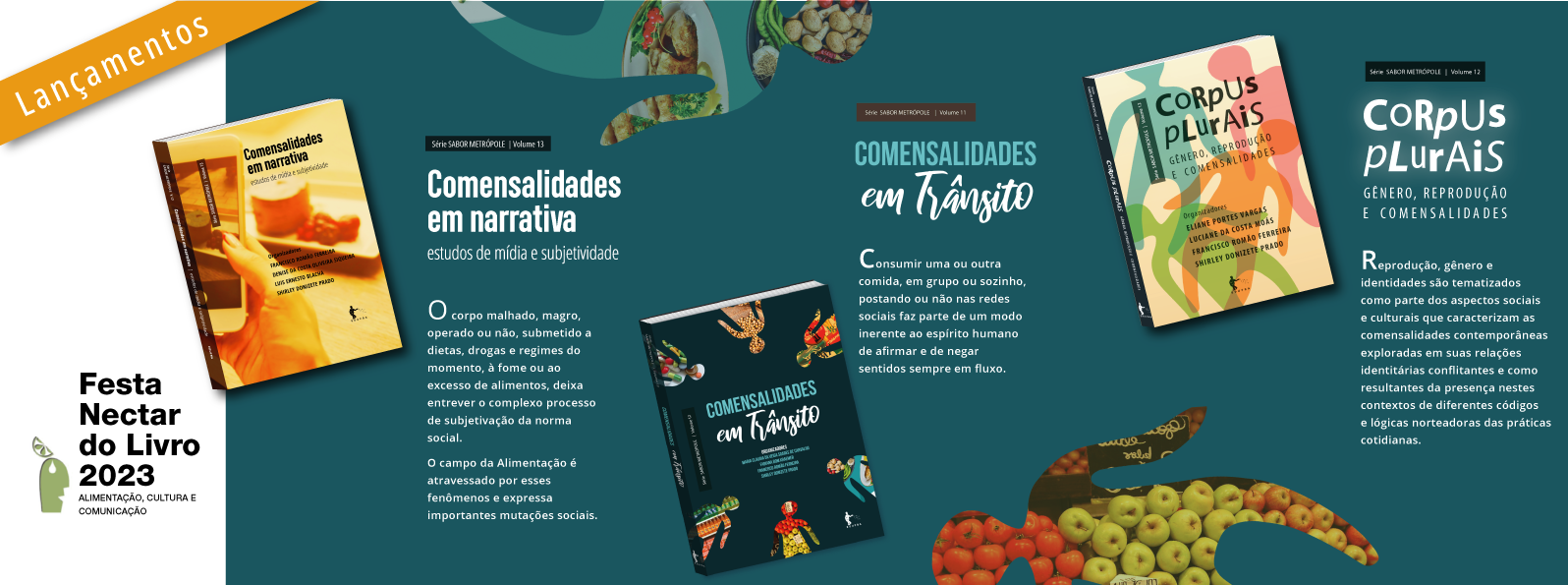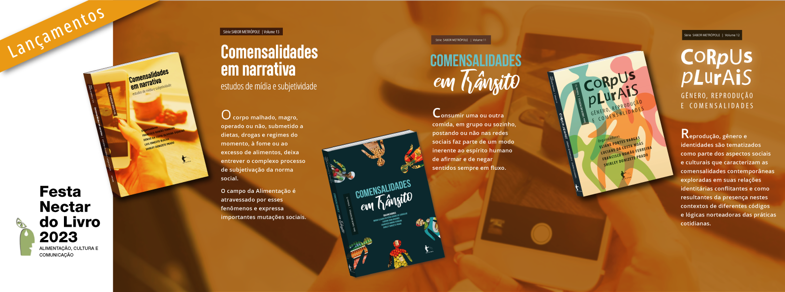 Banners impressos de divulgação de lançamentos editoriais do NECTAR.