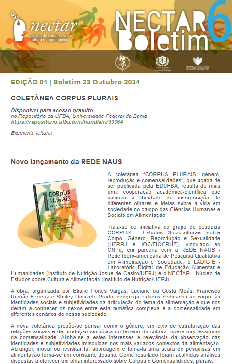 O núcleo de estudos se propõe a pensar o tema da Alimentação por caminhos ampliados e inovadores. A perspectiva cultural do grupo busca revigorar, ampliar e re-nutrir as formas pensantes no ambiente acadêmico em torno das temáticas tratadas.