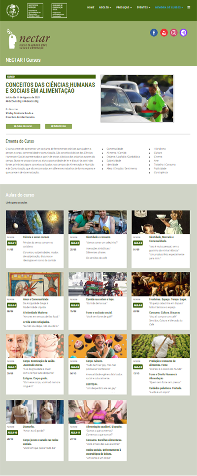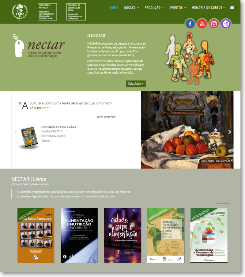 Site institucional com a produção do núcleo em diversos campos, links para projetos desenvolvidos além de registro de cursos ofertados.